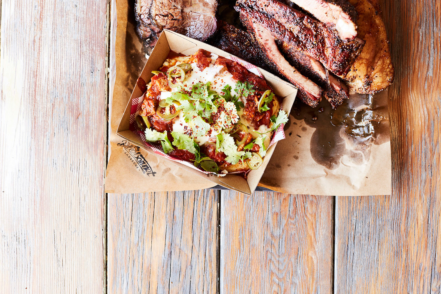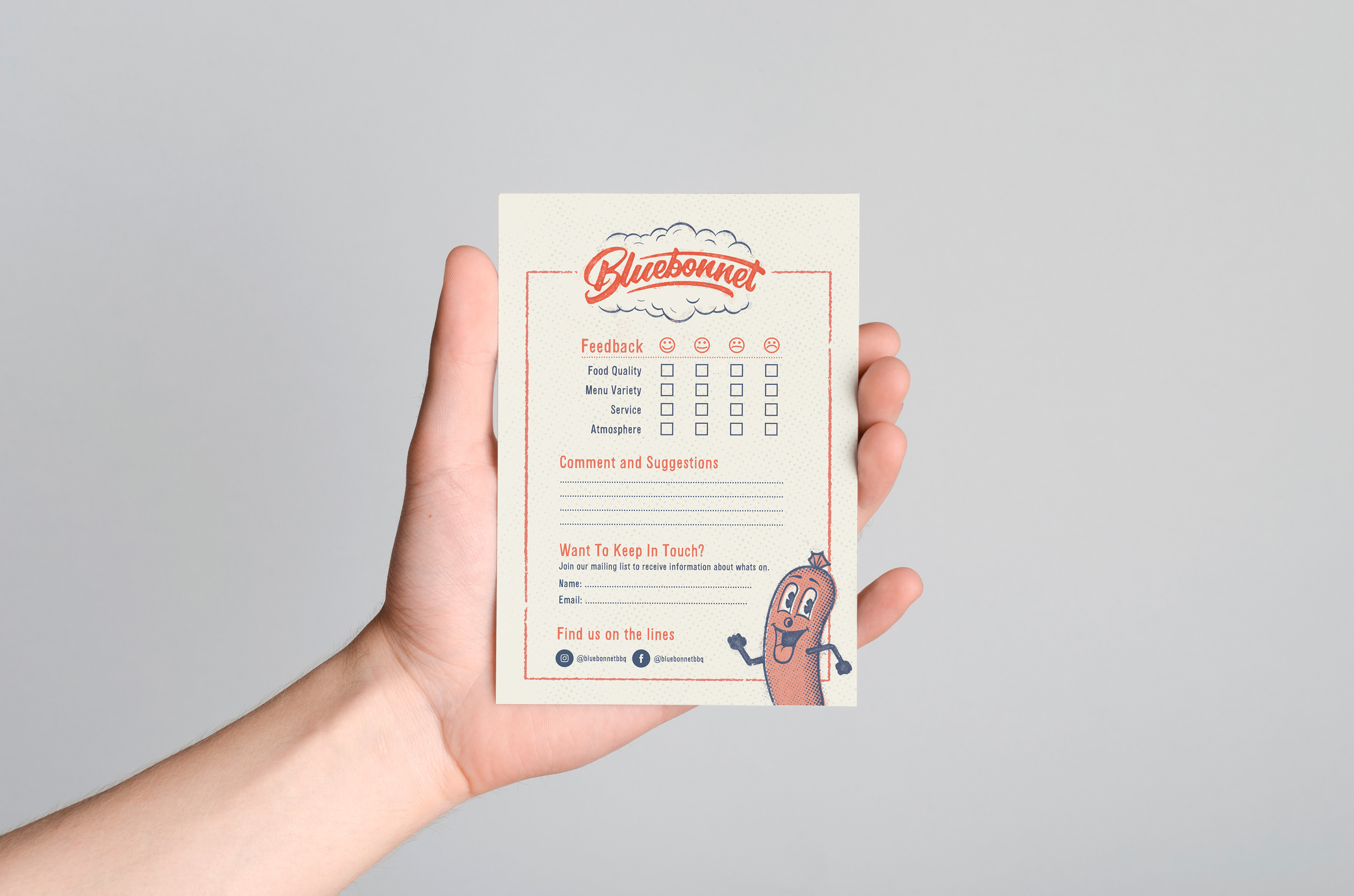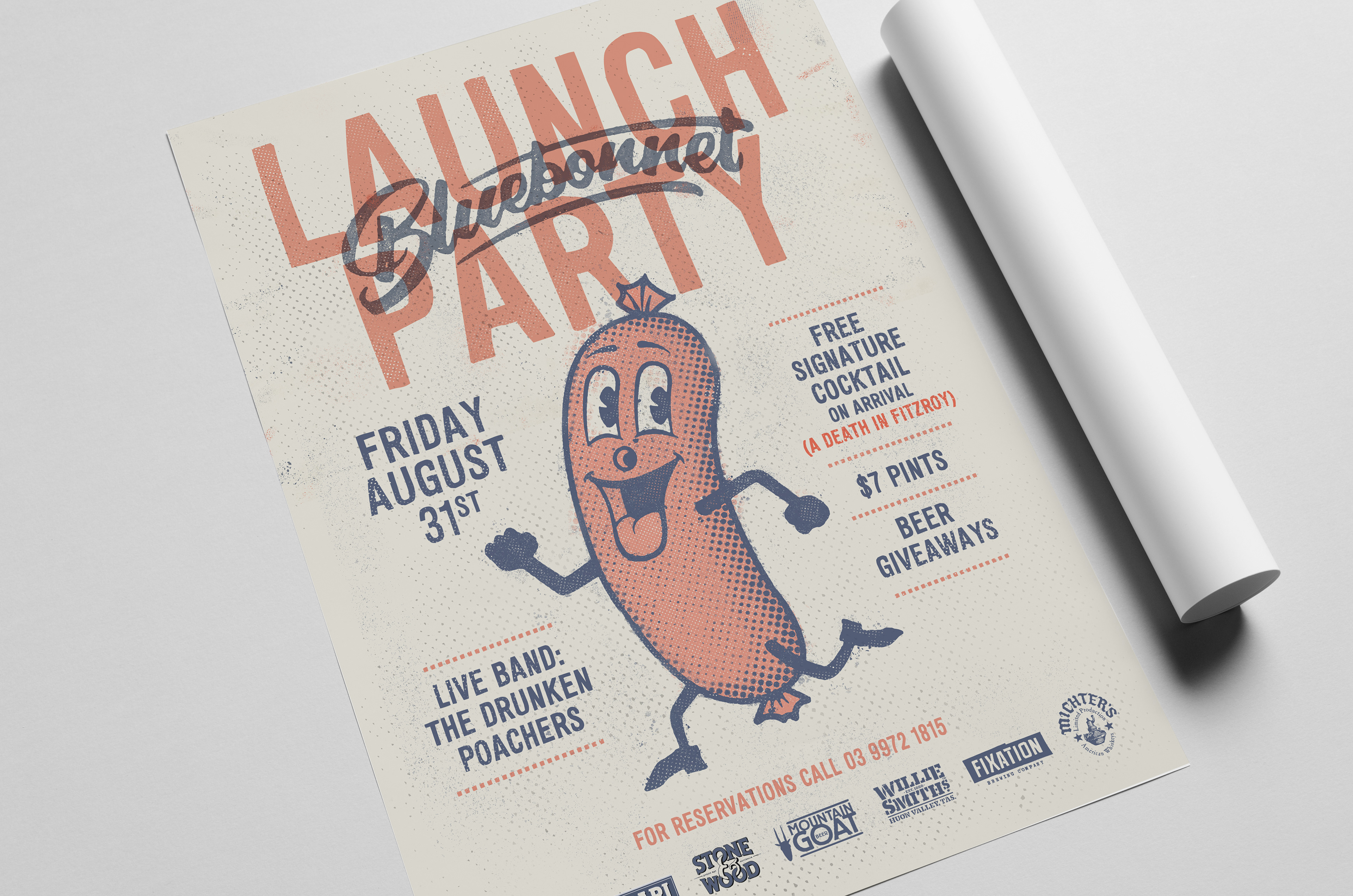 Over the last five years, Bluebonnet has proved itself in Melbourne’s thriving food scene. With the growing popularity of their American style barbecue food, they needed to find a new home and decided to step it up a notch with a new bigger venue. Taking the plunge, the team transformed a rundown old building in East Brunswick’s busy dining strip. The result is a rustic yet contemporary new space that oozes sophistication with capacity for 170 people. Inspired by this new space, the branding was created as a nod to old-school Americana. The red and blue colour palette sets the tone, the heavy use of distressing and halftone dots drives home the feeling of years gone by. The hand-drawn characters are inspired by vintage advertising and bring a real sense of fun to the brand. From business cards, menus, light-boxes and t-shirts to hand-painted signs and posters, everything was created to match the brand's raw, old school look & feel. Photos: Kate Shanasy
